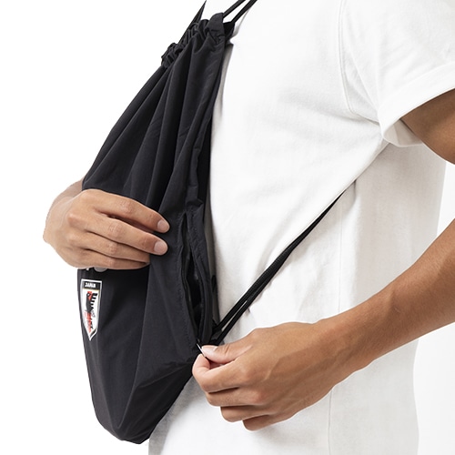 毎日のトレーニングに必要な物を持ち歩けるようにデザインされたジムバッグ。開口部が大きく開く、必携ギアが十分に入る大きさのメインコンパートメントの他に、貴重品の収納に便利な小さなジップポケットが付いています。ドローコードはショルダーストラップを兼ねているから、ピッチと更衣室の往復にさっと背中に背負えて便利。