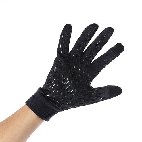 手のひらには滑り止めのシリコンプリント、指先にはタッチスクリーンを操作できる素材をあしらった、フィールドプレーヤーとサッカーファンのためのデザイン。手を暖かく保ちゲームへの集中を促す、フリース製。