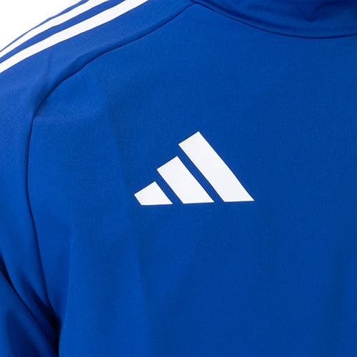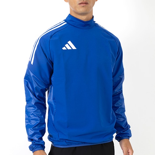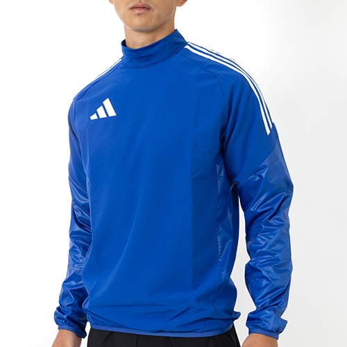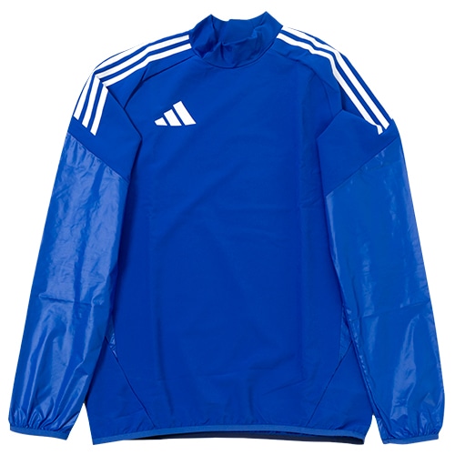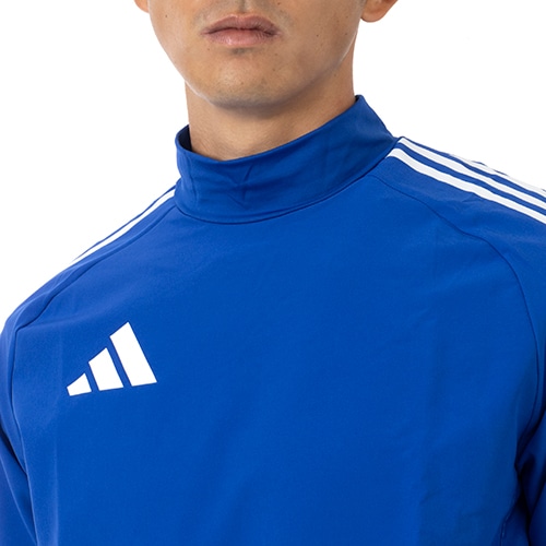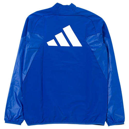 素材に厚手のダブルニット生地を用い、モックネックと伸縮性のあるトリムを備えて、風の強い日でも身体を保護するデザインに仕上げている。3バーロゴとスリーストライプスをあしらった、スポーティーな一着。