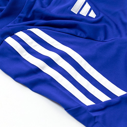 アスリートの動作をフォローする作りで、汗を素早く吸収するAEROREADYの機能により快適な着心地がずっと続く。肩に浮き上がるスリーストライプスと刺しゅうの3バーロゴが、アディダス自慢のサッカースタイルの象徴。