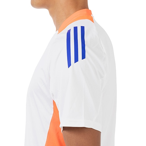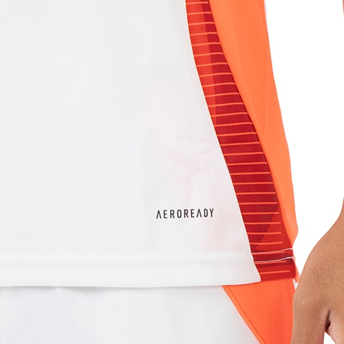 リサイクル素材で作られた、吸湿性に優れたトレーニングジャージー。ハードな練習をこなす間、吸湿性を発揮するAEROREADY素材がドライで快適なコンディションを保つ。戦略的に配置したメッシュパネルがさらに通気性を向上させ、暑さを気にすることなくピッチを支配するプレーに集中できる。