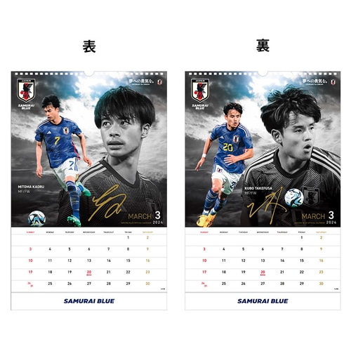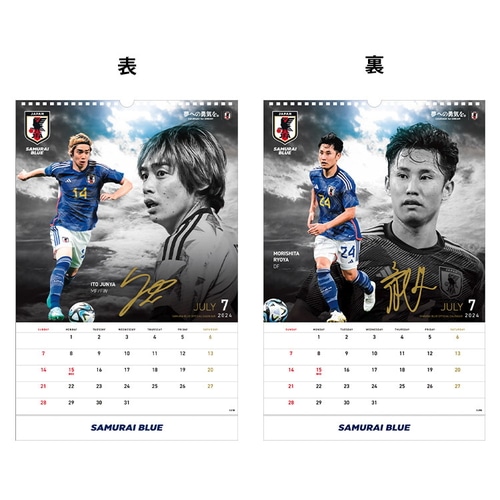 - 2024年版、サッカー日本代表(SAMURAI BLUE)カレンダー壁掛けタイプ。