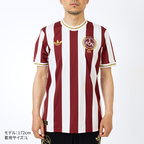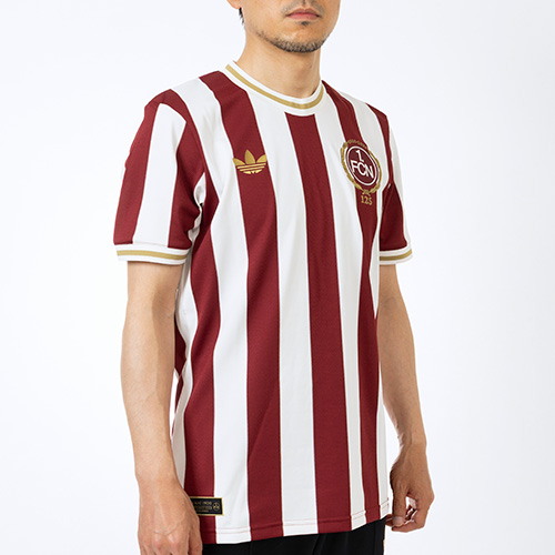 125周年を記念してリリースされた、1. FCニュルンベルクのジャージー。赤と白のストライプを描く、クラブのかつてのユニフォームを思わせるデザインの、数々の伝説を生み出してきたチームへの敬意を示す特別なシャツ。エレガントな輝きを放つ金色のディテールとビンテージカラーが特徴の、長く愛用しているような風合いのファンのマストアイテム。汗をコントロールするAEROREADY機能のおかげで、勝利を祝う間も爽やかな着心地が続く。