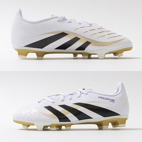 アディダスの象徴的なホワイトとブラックを基調に、シーズンの王者が獲得するトロフィーに敬意を表し、 ゴールドカラーを採用した「ROAD TO GLORY(ロード トゥー グローリー)PACK」が登場。すべては、試合を決めるゴールのために。現代のゴールスコアラーのために生まれ変わったadidas『PREDATOR(プレデター)』のFG(ファームグラウンド)/MG(マルチグラウンド)対応ジュニア用スパイク。