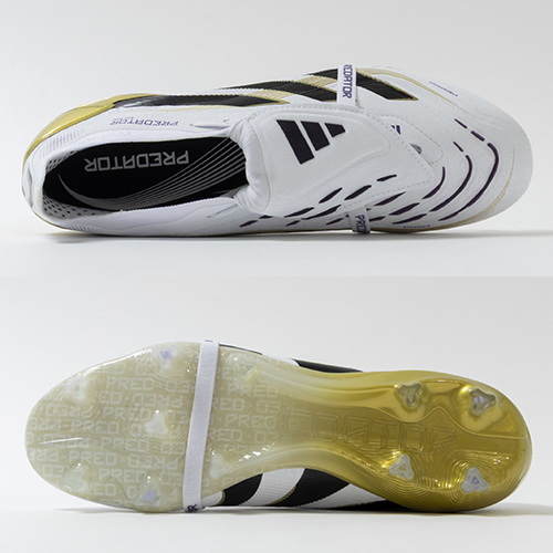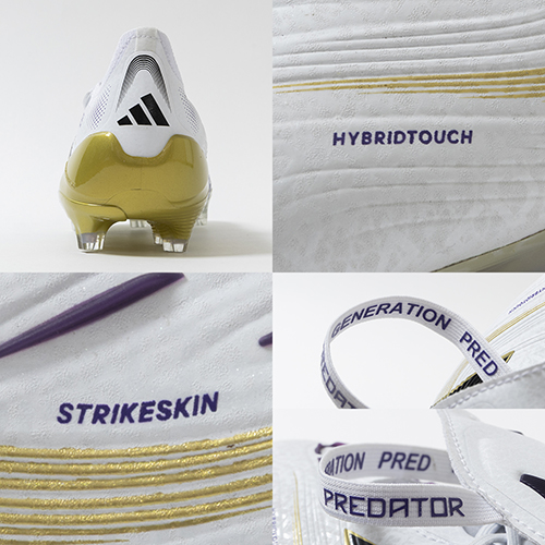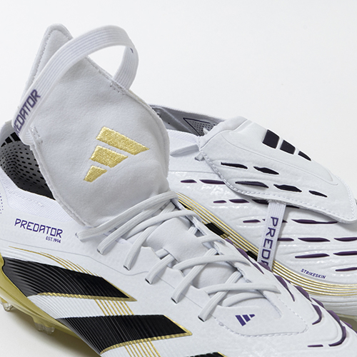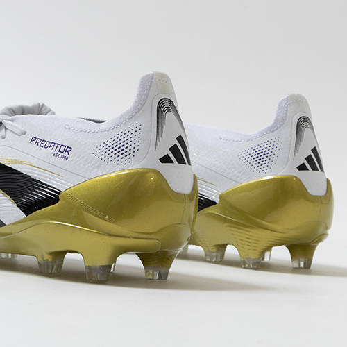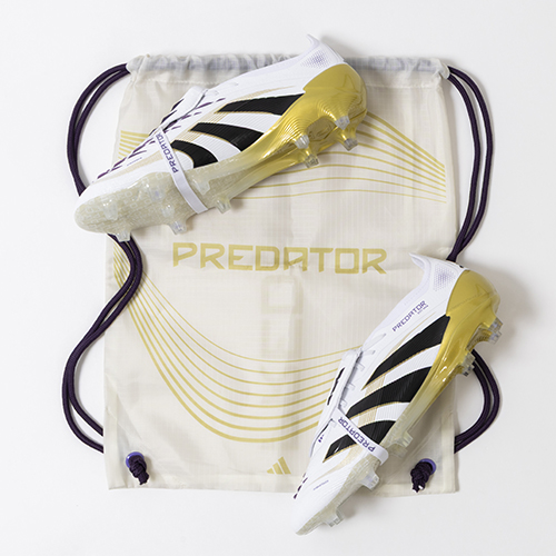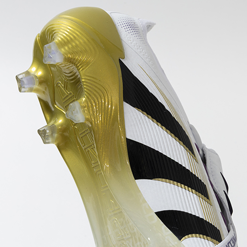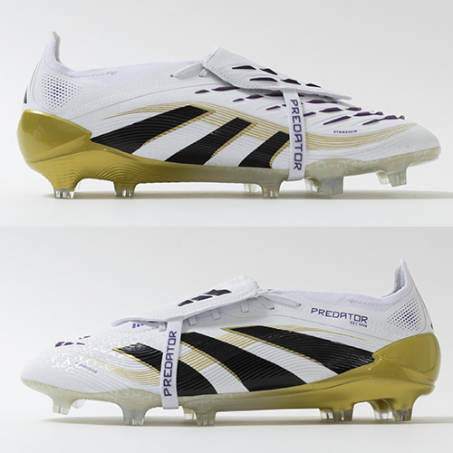 アディダスの象徴的なホワイトとブラックを基調に、シーズンの王者が獲得するトロフィーに敬意を表し、 ゴールドカラーを採用した「ROAD TO GLORY(ロード トゥー グローリー)PACK」が登場。すべては、試合を決めるゴールのために。現代のゴールスコアラーのために生まれ変わったadidas『PREDATOR(プレデター)』のFT(フォールディングタン)タイプのELITE(エリート)モデルFG(ファームグラウンド)対応スパイク。