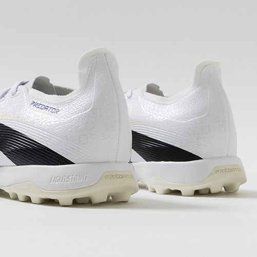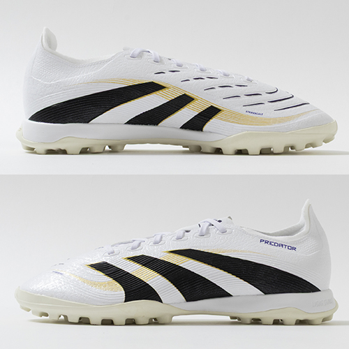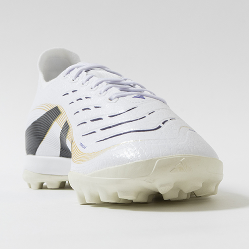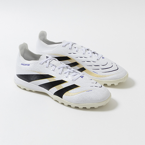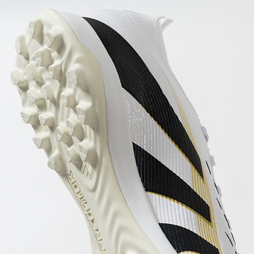 アディダスの象徴的なホワイトとブラックを基調に、シーズンの王者が獲得するトロフィーに敬意を表し、 ゴールドカラーを採用した「ROAD TO GLORY(ロード トゥー グローリー)PACK」が登場。すべては、試合を決めるゴールのために。現代のゴールスコアラーのために生まれ変わったadidas『PREDATOR(プレデター)』のLEAGUE(リーグ)モデルTF(ターフコート)対応トレーニングシューズ。