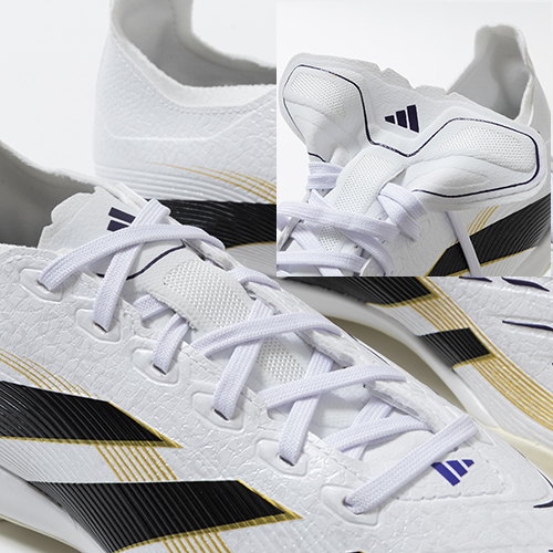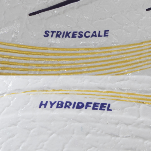 ●表面全体が凹凸のある形状になっているハイブリッドフィールアッパーは、グリップの効いたストライクスケールフィンを備えて、シュートを打つ際に正確なボールコントロールを可能にする。