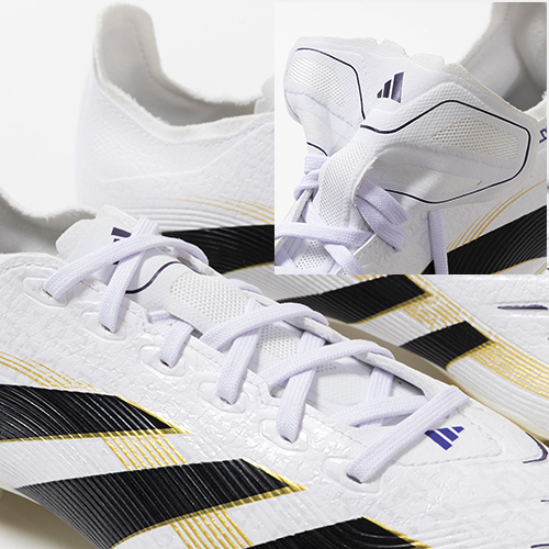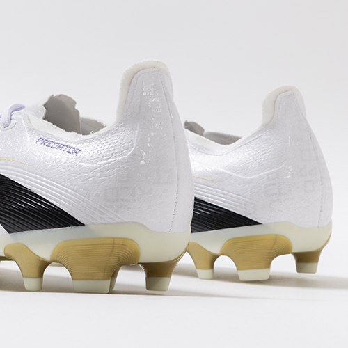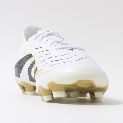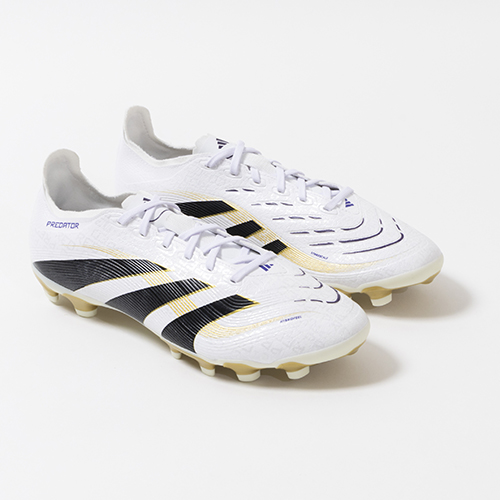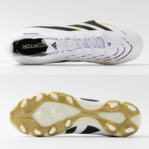 アディダスの象徴的なホワイトとブラックを基調に、シーズンの王者が獲得するトロフィーに敬意を表し、 ゴールドカラーを採用した「ROAD TO GLORY(ロード トゥー グローリー)PACK」が登場。すべては、試合を決めるゴールのために。現代のゴールスコアラーのために生まれ変わったadidas『PREDATOR(プレデター)』のLEAGUE(リーグ)モデルHG(ハードグラウンド)/AG(アーティフィシャルグラス)対応スパイク。