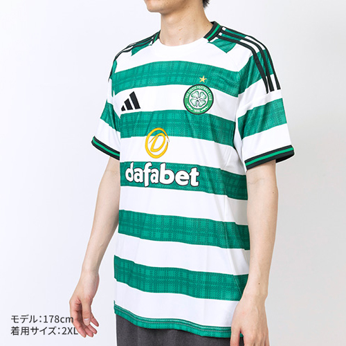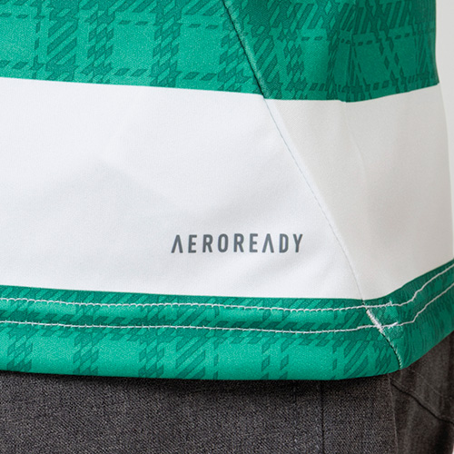 クラブの伝統を象徴するアイコニックな緑と白の横じま(フープス)が目を引き、緑色の箇所に目を凝らすと浮かび上がってくる、ケルトのタータンからインスピレーションを得たディテール。目を引く外観に加え、吸湿性に優れたAEROREADYが、ピッチやスタンドにいるときも、自宅でビッグゲームを観戦するときも、ドライな肌触りを維持して快適さが持続します。関連商品