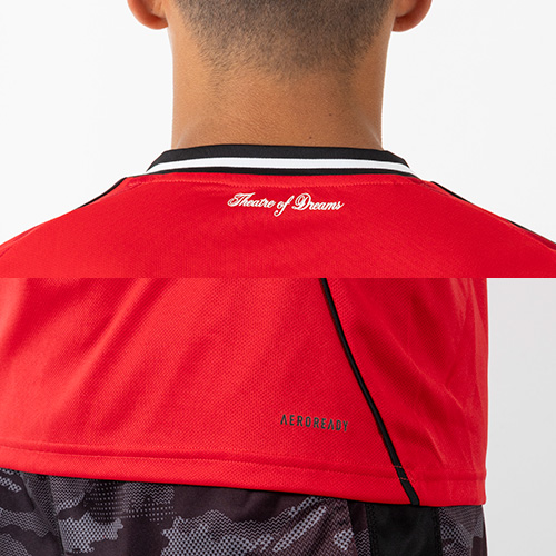 マンチェスター・ユナイテッドの本拠地が長年生み出してきたドラマに匹敵する舞台は、他にそう多くはない。そんな「夢の劇場」への敬意を込めてデザインされた袖にはオールド・トラッフォードに着想を得た抽象的なグラフィックと「Theatre of Dreams」のサインオフをあしらっている。