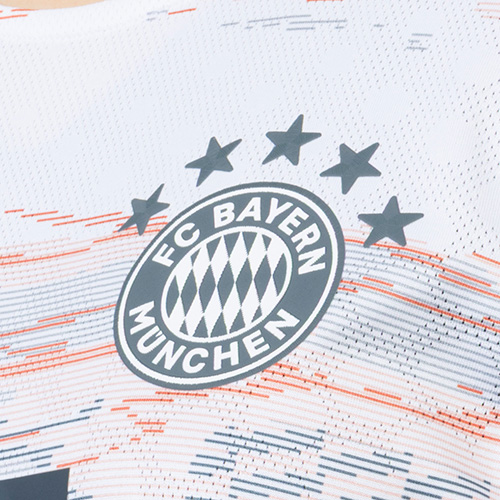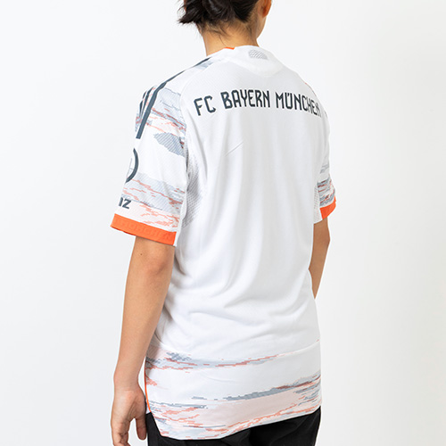 誇りある輝き。20年間にわたってFCバイエルンファンの勝利への道を切り開いてきたアリアンツ・アレーナ。ミュンヘンのナイトゲームからインスピレーションを得た、抽象的なプリントが目を引くAWAYユニフォームは、吸湿性に優れたエアロレディで応援中も快適さが持続。胸にあしらわれたクラブバッジの刺しゅうと、首の背面にあるスタジアムの小さなグラフィックが、あなたの愛してやまないホームグラウンドを周囲にアピール。