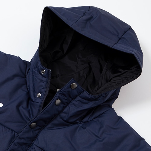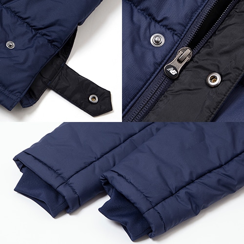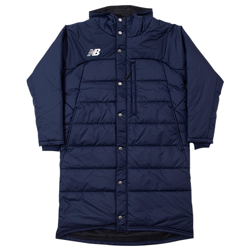 - 胸のワンポイントNBロゴと後裾のリニアロゴでアレンジしたベーシックな中綿ロングコート。