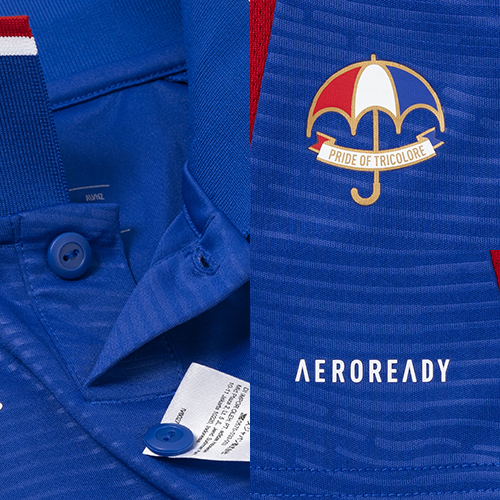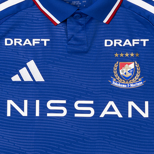 そのフラッグが力強くはためく姿をエンボス加工で表現したブルーのユニフォームは、横浜F・マリノスに強さをもたらす海の煌めきが表現されている。