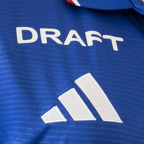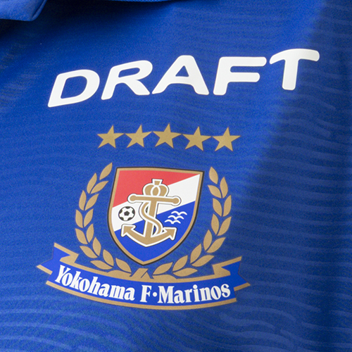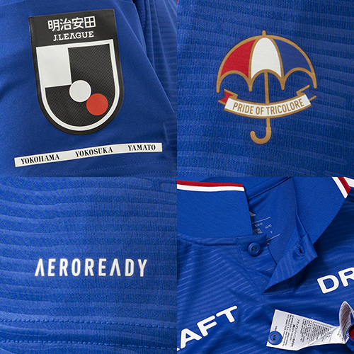 そのフラッグが力強くはためく姿をエンボス加工で表現したブルーのユニフォームは、横浜F・マリノスに強さをもたらす海の煌めきが表現されている。