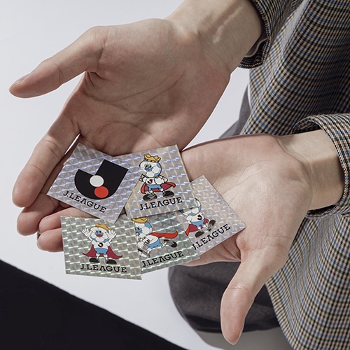 1993年のJリーグ開幕時から使用されているJリーグの顔であるJリーグシンボルと、さまざまなポーズをとるJリーグキングのホログラムステッカー5枚入り。