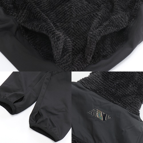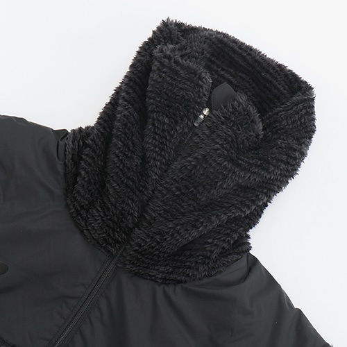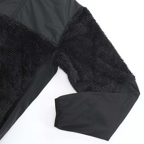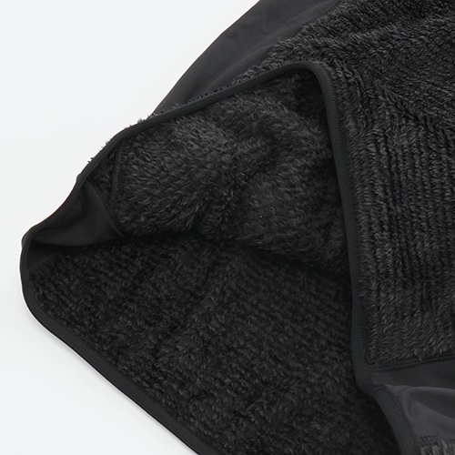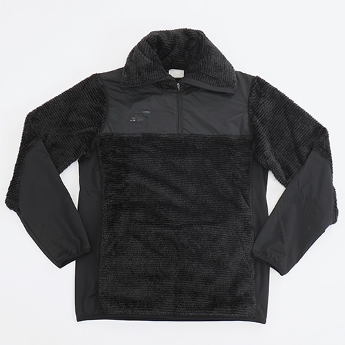 遠征での移動からストリートまで幅広くカバーするフリーストップを、スタイリッシュなブラックでトーナルにまとめました。フリース素材をベースに、ヨークに防風性に優れた布帛を採用し、首回りをしっかりと覆うネックウォーマー調のハイネックカラー、サムホール付きで展開します。「フリースパンツ」(JMPF1153)とのセットアップもおすすめです。