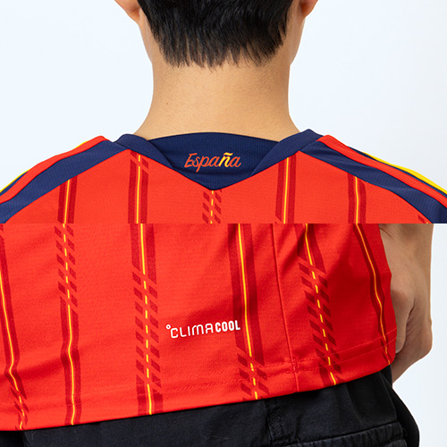 スペイン代表の2026年HOMEモデル ユニフォーム(サポーター着用モデル)。