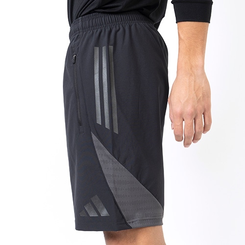 軽量ウーブンファブリックとAEROREADYテクノロジーの組み合わせにより、ドライで快適なはき心地が続く。携帯電話をいつでも手元に持ち歩ける、便利なポケット付き。