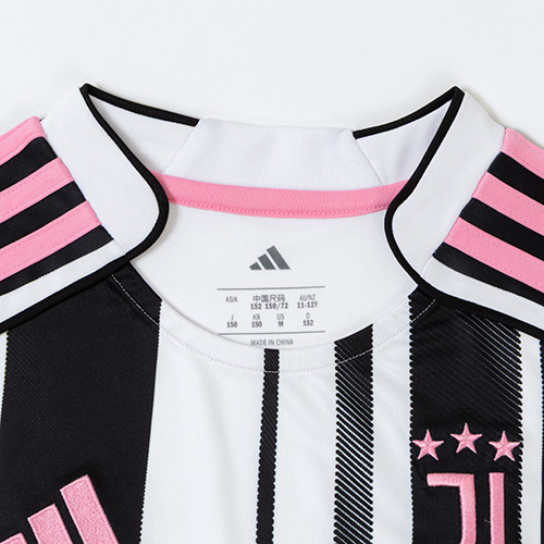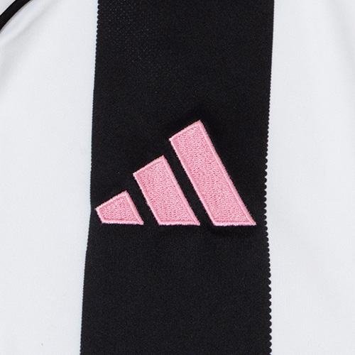 サッカーの伝統にちょっとしたひねりをプラス。ユベントスを象徴するストライプを取り入れた、目を引くデザイン。いつの時代も新鮮な印象を与える、ユベントスFCのピンク色で仕上げられた熱転写エンブレムエンブレムがサポーター魂をアピール。