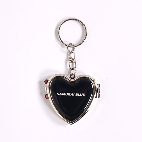 ハート型のオープンミラーキーホルダーです。フロントにVAMOS NIPPONロゴ、バックにSAMURAI BLUEのロゴがプリントされています。