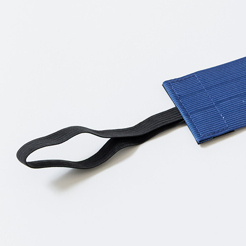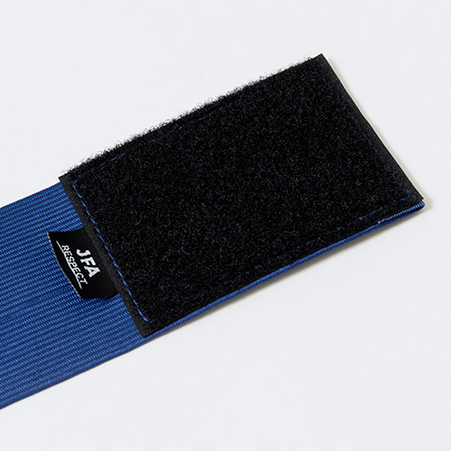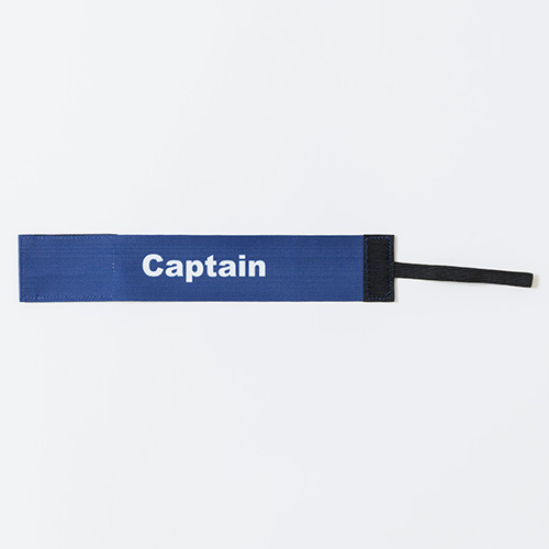 一般的な通称としては「キャプテンマーク」 と呼ばれている腕章です。着用方法としては、まず先に細い方のゴムを腕に通してから、本体を上腕に巻き付けて、お好みの位置で留めます。
