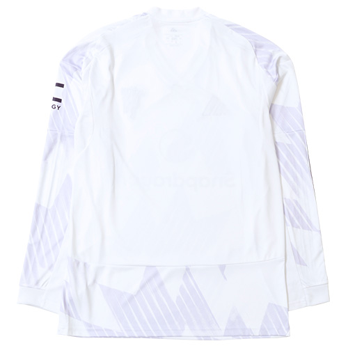 - プレミアリーグ(イングランド)・マンチェスター・ユナイテッドの2025-2026シーズン AWAYモデル 長袖ユニフォーム(サポーター着用モデル)。*ジャパンサイズ表記。