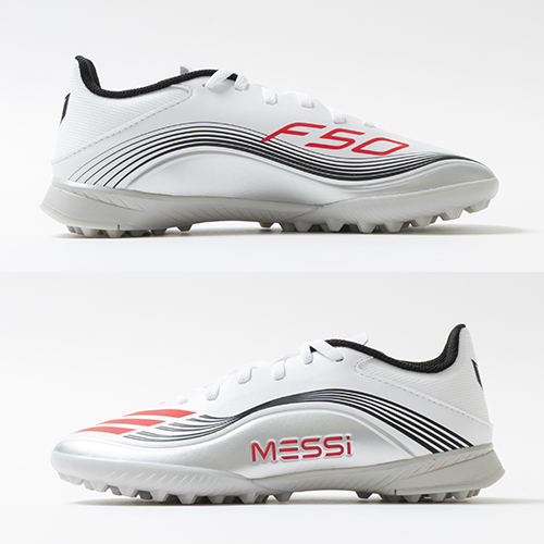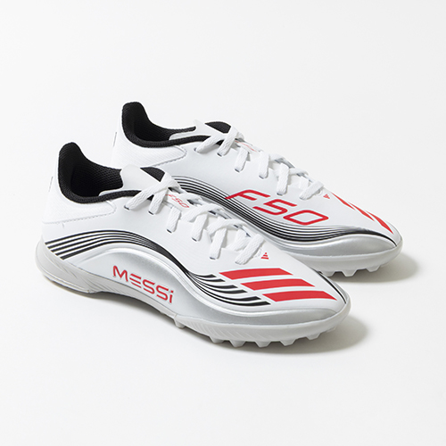 誰もが認める"GOAT"、メッシのような動きをサポートするために作られた限定コレクションが登場。軽量素材とテクノロジーを駆使し、現代のゲームスピードに適応するように再設計されたadidas『F50』のLEAGUE(リーグ)モデルTF(ターフコート)対応ジュニア用トレーニングシューズ。