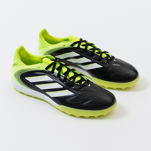 - 2025年7月8日(火)発売。秋冬の新色コレクション『RADIANT BLAZE(レイディアント ブレイズ) PACK』が登場。これまで以上に精度の高いコントロールを可能にする。ゲームを自在に操る支配者に捧げる、繊細なボールタッチと比類なき履き心地を追求した設計のadidas「COPA PURE(コパピュア) 3」のPRO(プロ)モデルTF(ターフコート)対応トレーニングシューズ。