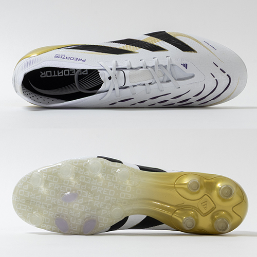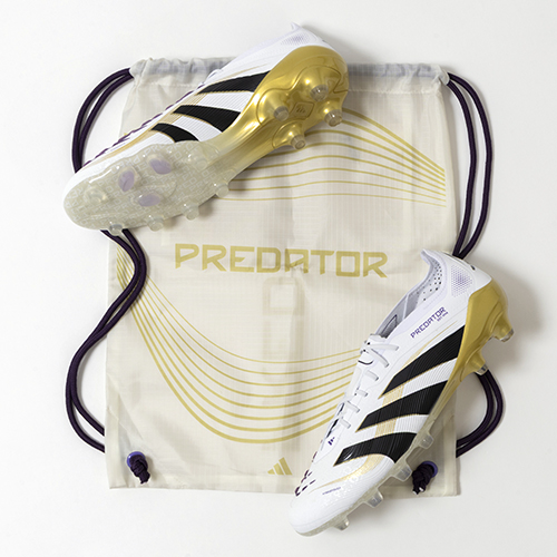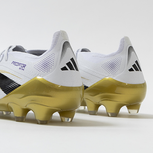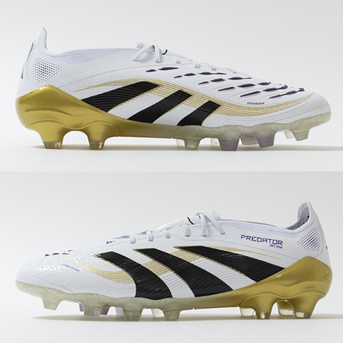 アディダスの象徴的なホワイトとブラックを基調に、シーズンの王者が獲得するトロフィーに敬意を表し、 ゴールドカラーを採用した「ROAD TO GLORY(ロード トゥー グローリー)PACK」が登場。すべては、試合を決めるゴールのために。現代のゴールスコアラーのために生まれ変わったadidas『PREDATOR(プレデター)』のジャパン仕様ELITE(エリート)モデルHG(ハードグラウンド)/AG(アーティフィシャルグラス)対応スパイク。