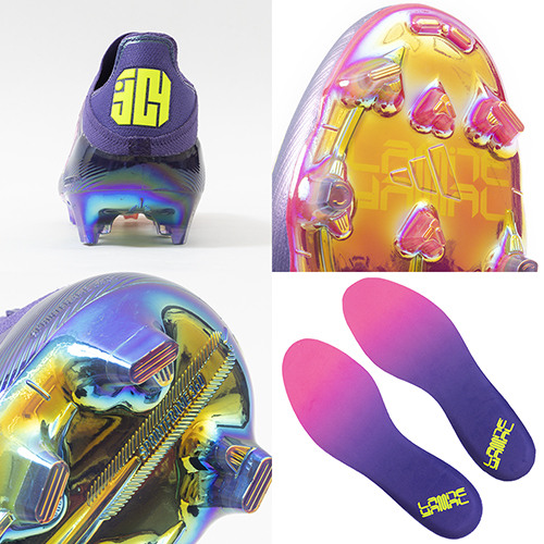 ●爆発的な推進力と効率的に素早くパワー伝達するために設計された「スプリントフレーム360」アウトソール。追加の前足スタッドとジェネレーティブスタッドデザインは、乾いた天然芝でのトラクションを最適化。さらに一体型のエクスターナルヒールカウンターを採用し、あらゆる方向への加速とスピードに貢献。