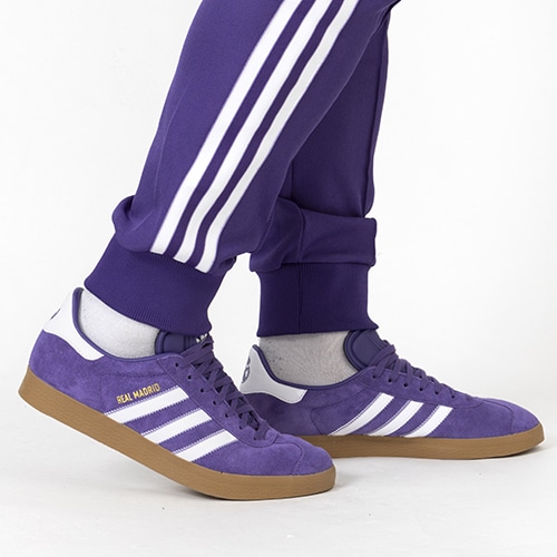 レアル・マドリードのディテールをまとったアディダス ガゼルは、クラブファッションを欲するファンのマストハブシューズ。1980年代のサッカーカルチャーを称えるコレクションの一部で、ソフトなスエードアッパー、Tトゥ、成型シュータン、ラバーアウトソールなど、お馴染みの仕様をすべて踏襲している。