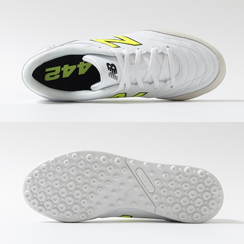 - 2025年1月22日(水)発売。2025年春夏の新作コレクションが登場。新しいクラフトマンシップ。「442(ヨンヨンニ) V2」のTF(ターフコート)対応ジュニア用ワイドモデルトレーニングシューズ。