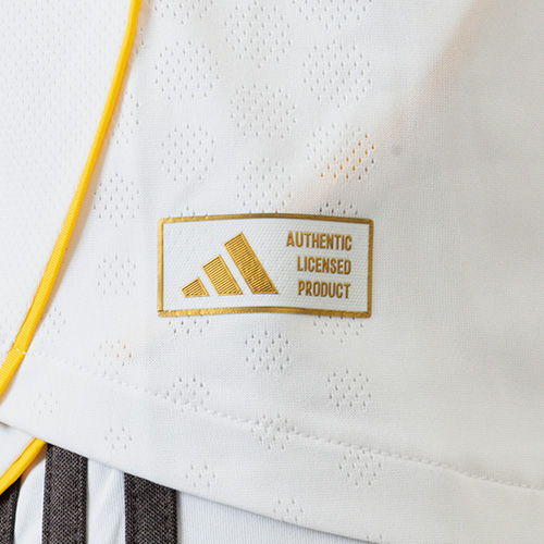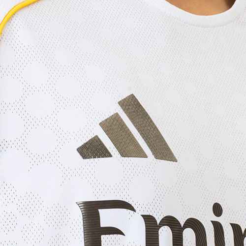チームの礎の上に築かれたデザイン。サンティアゴ・ベルナベウの最新リニューアルを記念した、レアル・マドリードのオーセンティックユニフォーム。長い歴史にアイデアを得た形状・質感・色彩を繊細に取り入れている。伝説のスタジアムでの25-26シーズンの着用を想定し、俊敏なプレーを支える構造と、熱圧着のクラブエンブレムを搭載。フィールドに立つインスピレーションをかき立てる一着。