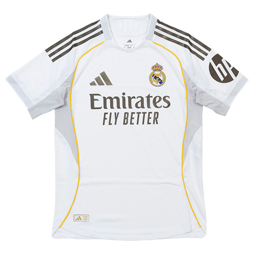 ラ・リーガ(スペイン)レアル・マドリードの2025-2026シーズンHOMEモデル オーセンティックユニフォーム(選手着用モデル)。