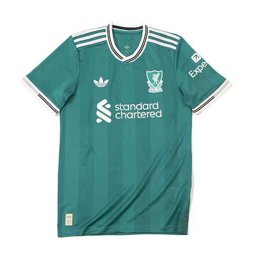 リバプールFCの歴史あるスリーストライプスにインスピレーションを得た、現代に映えるクラシックな一枚。このエレガントな同系色の縦ストライプは、ひと目でわかるadidas Equipmentグリーンが特徴。胸元には、1991年以来初となるクラブバッジとトレフォイルロゴの共演。アウェイでの勝利を収めるために作られたこの高機能な一枚は、着るたびにその心地よさを実感できる。