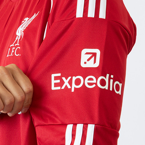 - プレミアリーグ(イングランド)・リヴァプールFCの2025-2026シーズン HOMEモデル 長袖ユニフォーム(サポーター着用モデル)。*ジャパンサイズ表記。