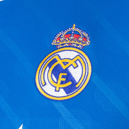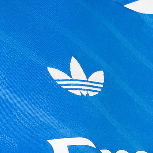 ホームで青をまとう。マドリディスタやスリー・ストライプスのファンの心に響く色合い。adidas Originalsの定番色に、ベルナベウのスピリットをさりげなく重ね、クラブとブランドの絆を象徴する一着に仕上がっている。ギザギザのスリーストライプスとトレフォイルロゴが、アディダスのヘリテージを強く印象づけるデザイン。