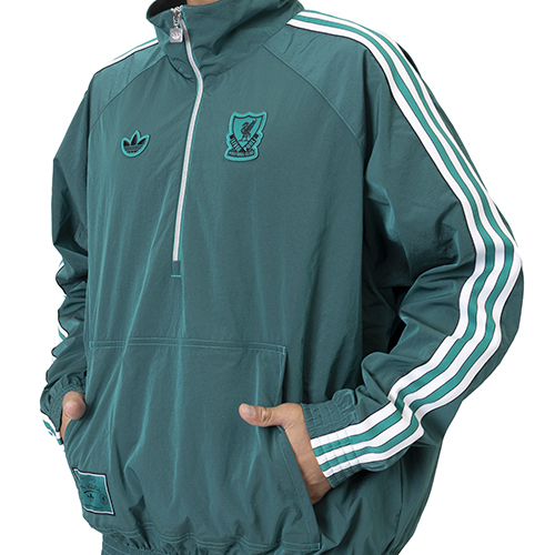 アンフィールドで一目置かれたいリバプールFCファンなら、このadidasジャケットは試合当日に着ていく服として欠かせないアイテム。耐久性に優れたウーブンファブリックを使用し、襟元を素早く調節できるハーフジップ仕様。トレフォイルロゴとヴィンテージのクラブバッジにより、80年代のサッカーカルチャーを取り入れたスタイルにアレンジ。