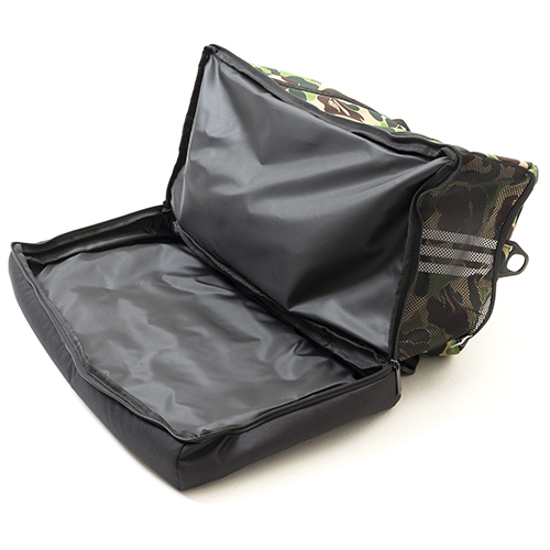 「A BATHING APE」とアディダスがコラボレーション。週末の休暇でも、アクティブなライフスタイルに対応できるデザインのダッフルバッグ。