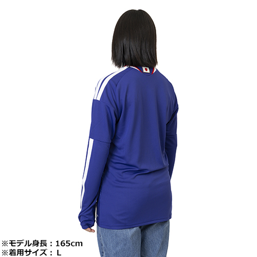 サッカー日本代表・サムライブルーの2026年ホームモデル レプリカ長袖ユニフォーム(サポーター着用モデル)。