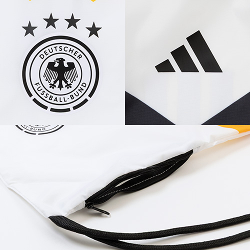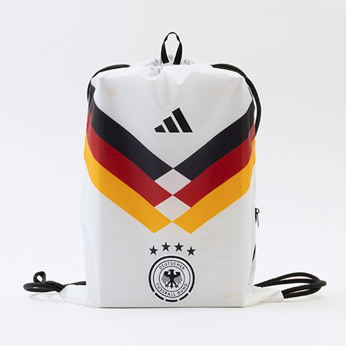 どこへ行くにも試合のスピリットと必需品を持ち歩ける、アイコニックなサッカージャージーにインスパイアされたドイツ代表ジムサック。
