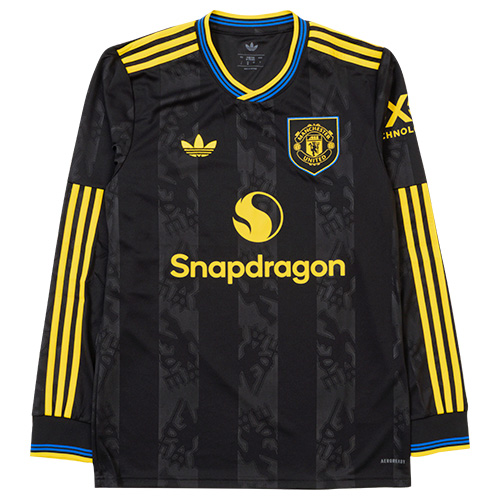 黄金時代を想起させる、クラシックで洗練されたadidasキットの一着。ブラックを基調としたマンチェスター・ユナイテッドのサードユニフォームは、クラブの伝説的な選手たちや、歴史的なアウェイでの戦いの記憶を映し出す。胸元にはイエローのトレフォイルロゴとクラブバッジが映え、「赤い悪魔」らしいディテールも随所に織り込まれている。軽量でパフォーマンス性を重視したデザインは、フィールドに新たな記憶を刻むために生まれた一枚。
