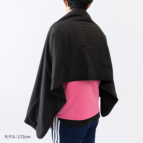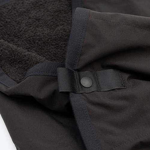●膝掛けや肩掛け以外にスタップボタンでフードになる汎用性に優れたデザイン。