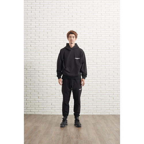 VALENCIANOの中では軽めの365gスウェット生地。スパンデックスを混合した素材を使用し、動くシーンでもしなやかに生地が伸縮。ブランドネーム付属。