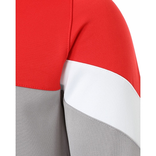 ●赤・グレー・白のパネル付きクルーネックジャンパー