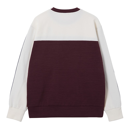 あえてクラシックなフォントを使用することで親近感のある印象に。両袖や型部分に施したパイピングがデザインのアクセント。表面と裏面で編地の密度を変えたハーフゲージニットを採用。表面は独特な杢柄になっており高級感のある風合い。吸汗・ストレッチ・UV CUT(UPF50+)。やや大きめのシルエット。