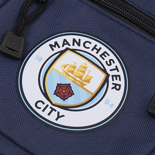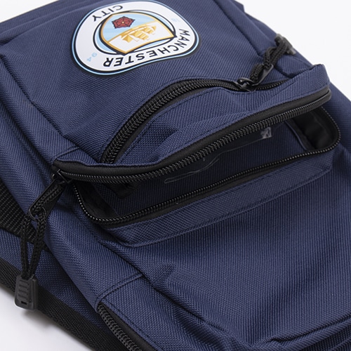 - プレミアリーグ(イングランド)、マンチェスター・シティのオフィシャルグッズ。クラブエンブレムがデザインされたボディバッグ。