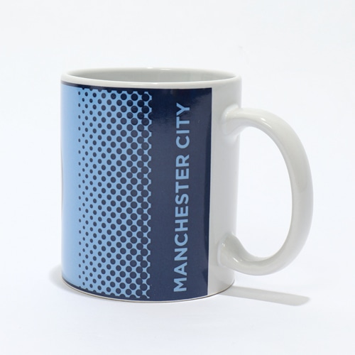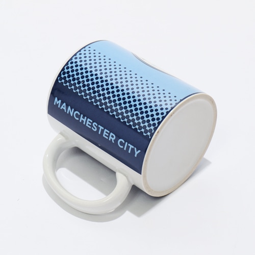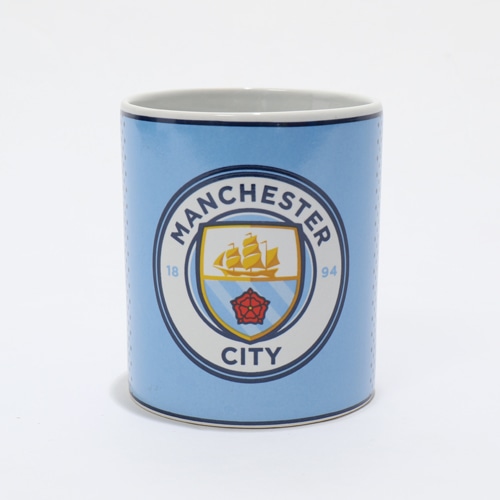 - イングランド・プレミアリーグ、マンチェスター・シティのオフィシャルグッズ。クラブエンブレムがデザインされたマグカップ。
