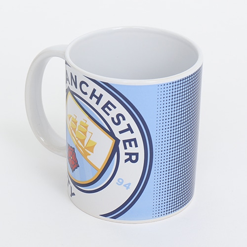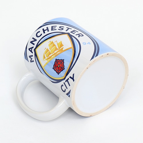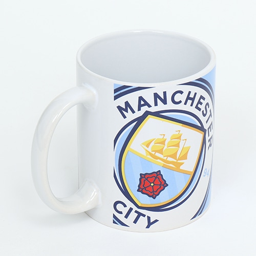 - プレミアリーグ(イングランド)、マンチェスター・シティのオフィシャルグッズ。クラブエンブレムがデザインされたマグカップ。