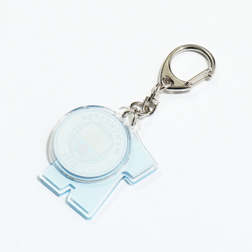 - イングランド・プレミアリーグ、マンチェスター・シティのオフィシャルグッズ。クラブエンブレムがデザインされたアクリル2連チャーム。
